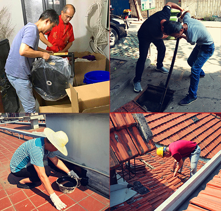 高溫酷暑不止會給人的身體帶來不適,對于老舊房屋也會造成隱患,7月17日上午,室外氣溫36度,暴曬下的屋面平頂,熱浪撲面而來。身為房屋“維保醫(yī)生”的房產(chǎn)集團一分公司維修班師傅們蹲在滾燙的屋面上進行治漏工作。房產(chǎn)集團各單位的工人們在社區(qū)疏通作業(yè)、在機房檢修設備、在社區(qū)清掃、在勝利街優(yōu)保建筑進行立面修繕、在工地周圍進行圍擋整理及道路清理......
