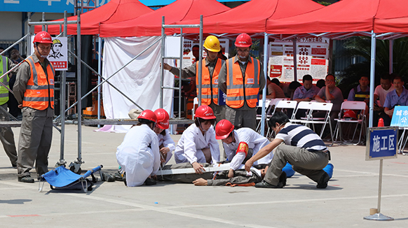 為進一步做好安全生產(chǎn)應(yīng)急預(yù)案演練工作,提高安全生產(chǎn)應(yīng)急管理水平和應(yīng)急救援能力。6月15日上午,由市安監(jiān)局、市城投集團主辦、橋建集團承辦的2018年應(yīng)急演練競賽活動,在珞獅南路改造及配套工程項目現(xiàn)場舉行。市城投集團所屬燃?xì)饧瘓F、水務(wù)集團、橋建集團、房產(chǎn)集團、道橋公司、新城國博、新區(qū)公司、鐵投公司、城市運營公司共9家二級單位,分別針對燃?xì)夤芫W(wǎng)泄漏、水廠氯氣泄漏、在建工程基坑坍塌、老舊公房開裂、大型展會反恐、貓道作業(yè)、高處墜落、防汛、橋梁突發(fā)事件等方面,結(jié)合各自特點進行了現(xiàn)場模擬競演。演練結(jié)束后,專家評審組對各代表隊的演練情況進行了集中點評,并提出了改進完善建議。