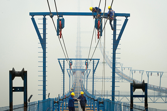 6月5日,由集團(tuán)公司投資建設(shè)的楊泗港長(zhǎng)江大橋完成首根主纜索股架設(shè),這是繼貓道完成驗(yàn)收后,該工程迎來的又一重要時(shí)刻,這意味著它離通車更近一步了。