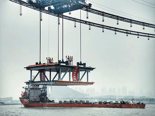 2018年11月15日上午8點,隨著兩臺纜載吊機將長36米、寬32.5米、高10米,重約1004噸的鋼桁梁提升到距離江面60米的位置,由武漢城投集團(tuán)建設(shè)、中鐵大橋院設(shè)計、中鐵大橋局施工的武漢楊泗港長江大橋主跨首節(jié)鋼桁梁架設(shè)成功,這標(biāo)志著世界最大跨度雙層公路懸索橋建設(shè)取得突破性進(jìn)展,正式開啟橋面建設(shè)的“南征北戰(zhàn)”新征程。