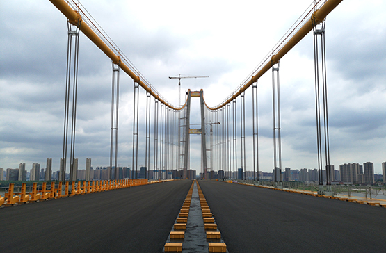 澆筑式瀝青混凝土攤鋪前的準(zhǔn)備工作于2019年4月5日啟動,5月24日完成了澆筑式瀝青混凝土的施工,5月28日完成了行車道鋼橋面的SMA面層攤鋪施工,6月23日完成了漢陽接線引橋的瀝青攤鋪工作。預(yù)計7月底完成武昌接線引橋瀝青攤鋪,8月底完成正橋防撞護(hù)欄施工,并同步開展交通工程、路燈、亮化、橋梁健康監(jiān)測、地面輔道、綠化等施工。