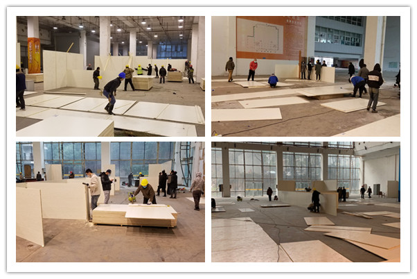 為確保項(xiàng)目建設(shè)順利推進(jìn)、按期建成,公司領(lǐng)導(dǎo)林馳、朱斌、盛華等輪班駐守現(xiàn)場,公司項(xiàng)目管理部、所屬橋建集團(tuán)負(fù)責(zé)現(xiàn)場管理。項(xiàng)目由漢陽市政集團(tuán)負(fù)責(zé)施工,同時公司安排所屬水務(wù)集團(tuán)負(fù)責(zé)供排水建設(shè)和服務(wù)保障,所屬譽(yù)城建設(shè)集團(tuán)增援施工人員力量。在公司的統(tǒng)一指揮和組織領(lǐng)導(dǎo)下,項(xiàng)目施工單位15日凌晨連夜采購、運(yùn)輸木芯板以及水電設(shè)施設(shè)備進(jìn)場,同步開展展館場地清理等工作。