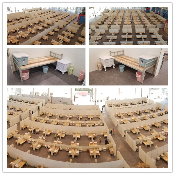 目前,項(xiàng)目建設(shè)正在順利推進(jìn)。截至16日上午,已完成了上、下兩層全部隔艙安裝以及二層518個床位拼裝,配套水、電等同步推進(jìn)中。預(yù)計(jì)16日晚24點(diǎn),可完成上下兩層全部1030張床位的布設(shè)以及主要設(shè)備設(shè)施安裝。