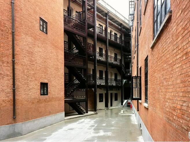 巴公房子極具特色的俄式紅磚清水墻因年久失修早已破舊不堪,為遵循最小干預(yù)原則,還原清水墻本色,天時公司修繕人員首先將被后人隨意粉刷過的墻面手工剝離,清縫再進行拼色做舊。為盡可能的復(fù)原房屋外立面紅磚的原貌,天時公司在項目施工前期采取現(xiàn)場取樣送檢的方式,在具有代表性的點位選取破損的紅磚,由同濟大學(xué)材料力學(xué)實驗室對其配料、強度、色澤、成分等進行檢測,并根據(jù)檢測結(jié)果進行磚粉配比。配比完成后,再及時進行打樣,經(jīng)多方認可后開始對清水墻展開施工,80余位工匠花費近1年時間,手工為8000?的房屋立面更換了共計56萬塊紅磚。